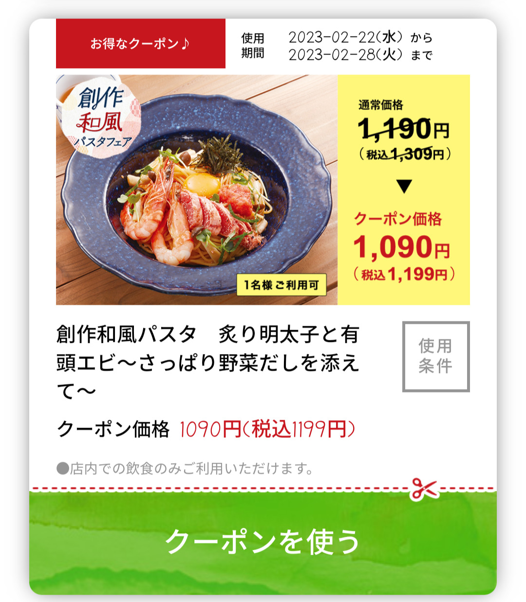 Screenshot_2023-02-23-20-42-06-43_18c55c137d170d465a3f9e3850d50c0a Published 2023年2月23日 at 1080 × 1236 in 【2024年2月最新】ジョリーパスタの割引クーポンまとめ情報 広告 ← Previous Next →