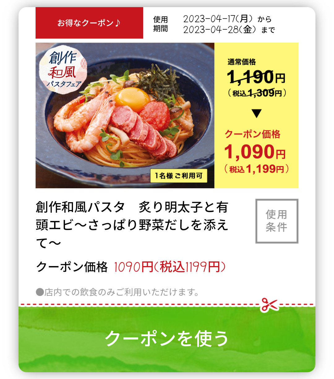 Screenshot_2023-04-18-19-46-07-78_18c55c137d170d465a3f9e3850d50c0a Published 2023年4月18日 at 1080 × 1228 in 【2024年2月最新】ジョリーパスタの割引クーポンまとめ情報 広告 ← Previous Next →