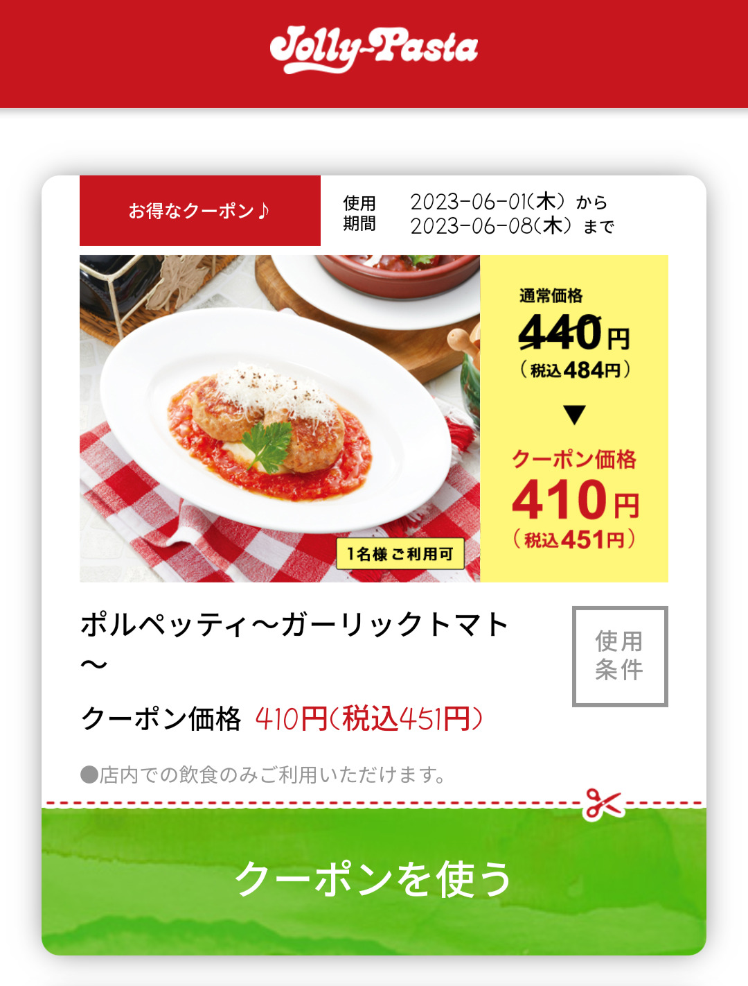 Screenshot_2023-06-06-18-31-59-80_18c55c137d170d465a3f9e3850d50c0a Published 2023年6月6日 at 1080 × 1422 in 【2024年2月最新】ジョリーパスタの割引クーポンまとめ情報 広告 ← Previous Next →