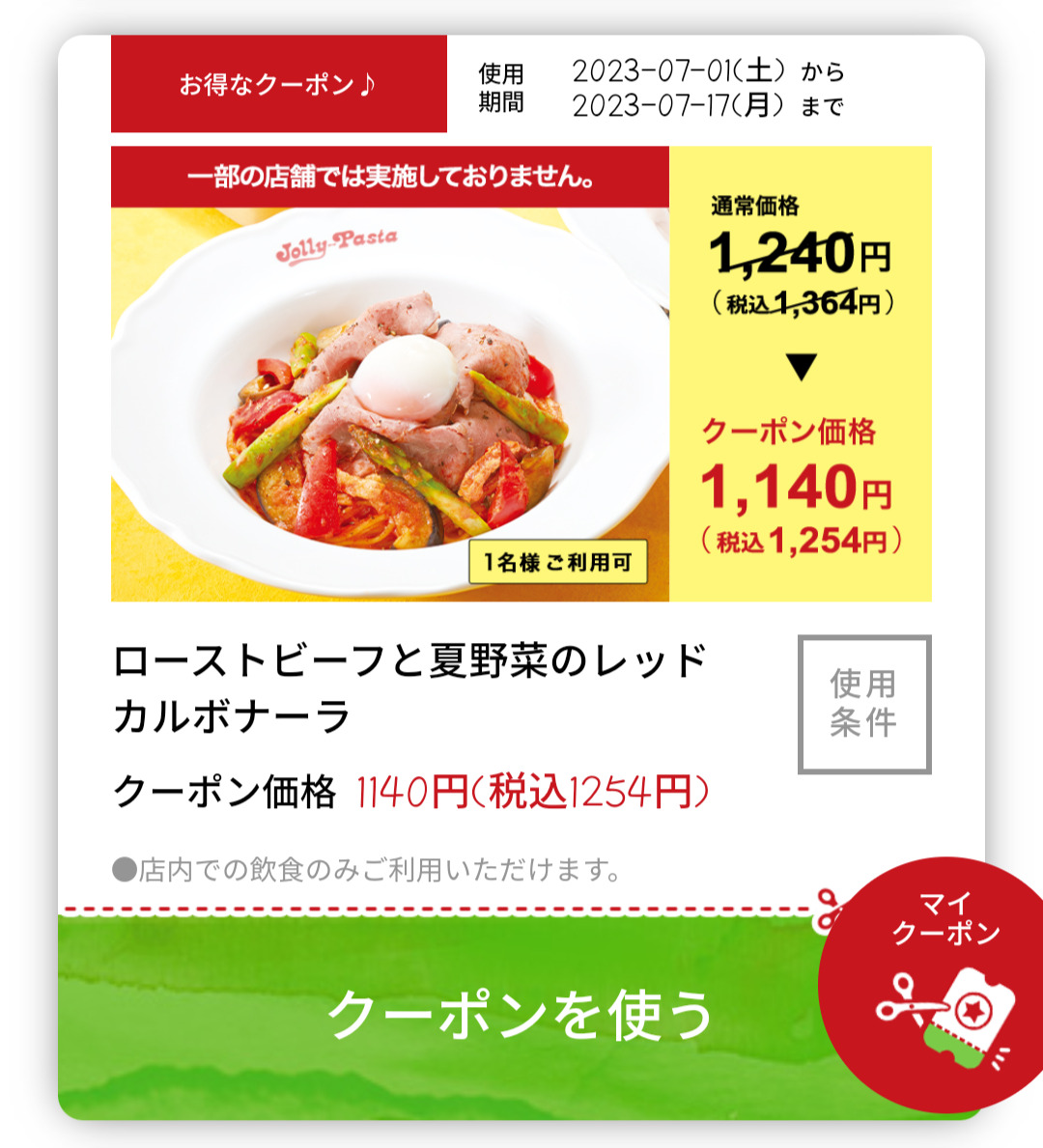 Screenshot_2023-07-05-19-17-09-80_18c55c137d170d465a3f9e3850d50c0a Published 2023年7月5日 at 1080 × 1189 in 【2024年2月最新】ジョリーパスタの割引クーポンまとめ情報 広告 ← Previous Next →