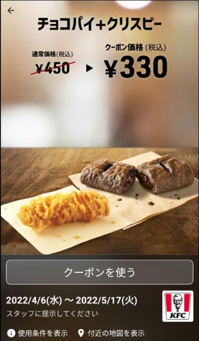 チョコパイ∔クリスピー120円引き Published 2022年4月7日 at 400 × 684 in 【2024年2月最新】ケンタッキーの割引クーポン チョコパイ∔クリスピー120円引き 広告 ← Previous Next →