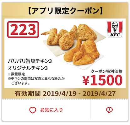 パリパリ旨塩チキン オリジナルチキン 1500円 Published 2019年4月22日 at 414 × 399 in 【2024年2月最新】ケンタッキーの割引クーポン 広告 ← Previous Next →