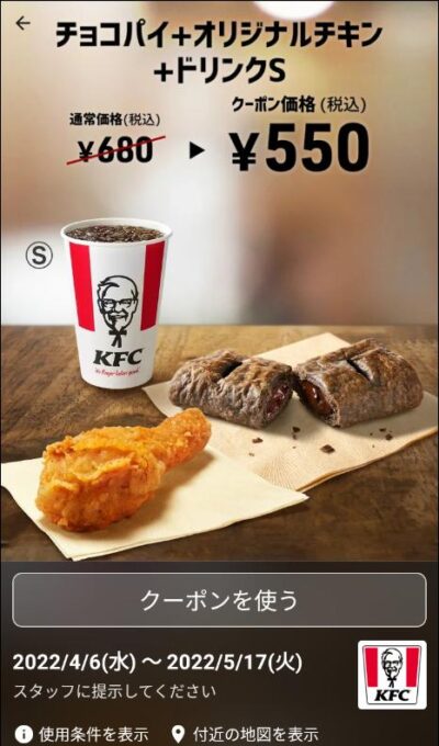 チョコパイ∔オリジナルチキン∔ドリンクS130円引き Published 2022年4月7日 at 400 × 680 in 【2024年2月最新】ケンタッキーの割引クーポン チョコパイ∔オリジナルチキン∔ドリンクS130円引き 広告 ← Previous Next →