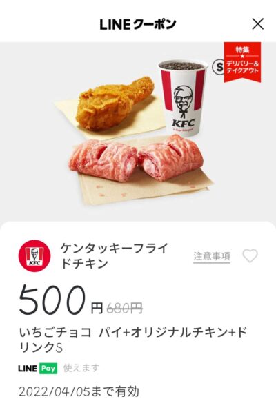 ケンタッキーいちごチョコパイ+オリジナルチキン+ドリンクS180円引き Published 2022年3月5日 at 400 × 591 in 【2024年2月最新】ケンタッキーの割引クーポン いちごチョコパイ+オリジナルチキン+ドリンクS180円引き 広告 ← Previous Next →