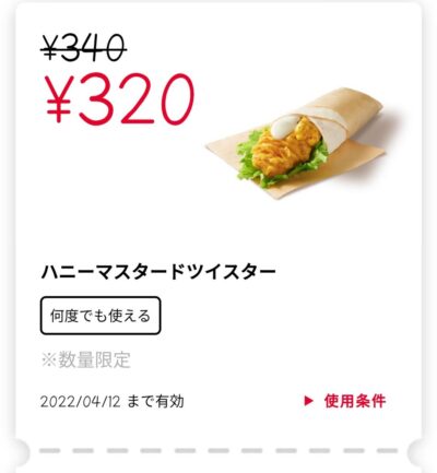 ハニーマスタードツイスター 20円引き Published 2022年3月19日 at 400 × 433 in 【2024年2月最新】ケンタッキーの割引クーポン ハニーマスタードツイスター 20円引き 広告 ← Previous Next →