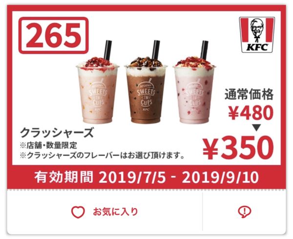 クラシャーズ各種130円引き Published 2019年7月8日 at 600 × 489 in 【2024年2月最新】ケンタッキーの割引クーポン クラシャーズ各種130円引き 広告 ← Previous Next →