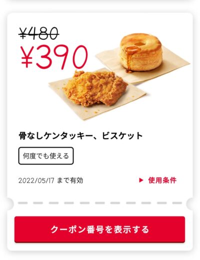 骨なしケンタッキー、ビスケット90円引き Published 2022年4月7日 at 400 × 521 in 【2024年2月最新】ケンタッキーの割引クーポン 骨なしケンタッキー、ビスケット90円引き 広告 ← Previous Next →