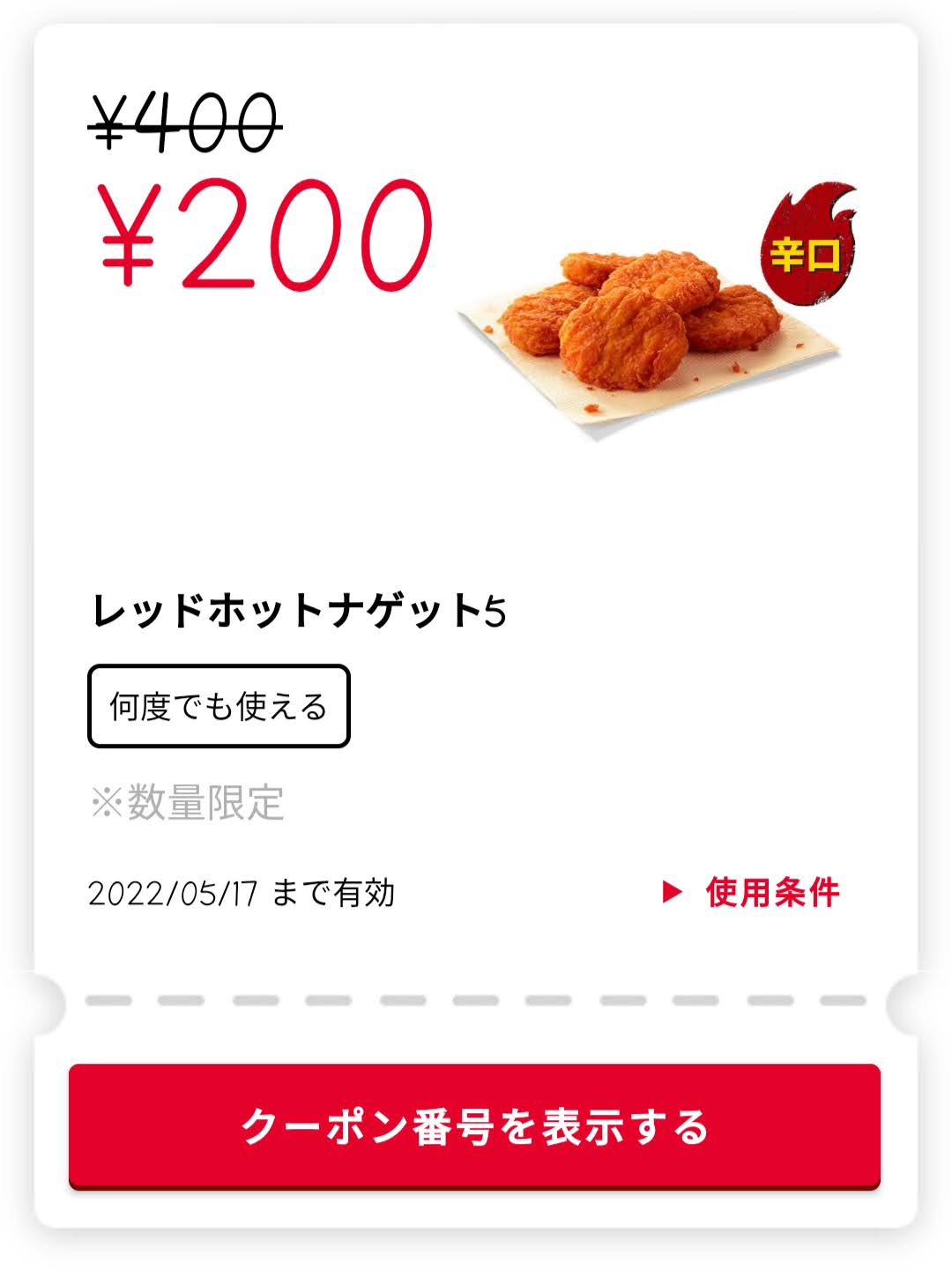 レッドホットナゲット200円引き Published 2022年4月7日 at 1080 × 1441 in 【2024年2月最新】ケンタッキーの割引クーポン レッドホットナゲット200円引き 広告 ← Previous Next →
