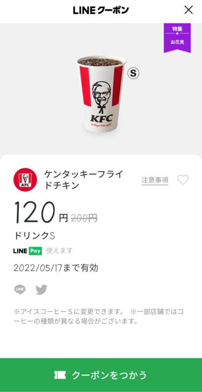 ドリンクS80円引き Published 2022年4月7日 at 400 × 775 in 【2024年2月最新】ケンタッキーの割引クーポン ドリンクS80円引き 広告 ← Previous Next →