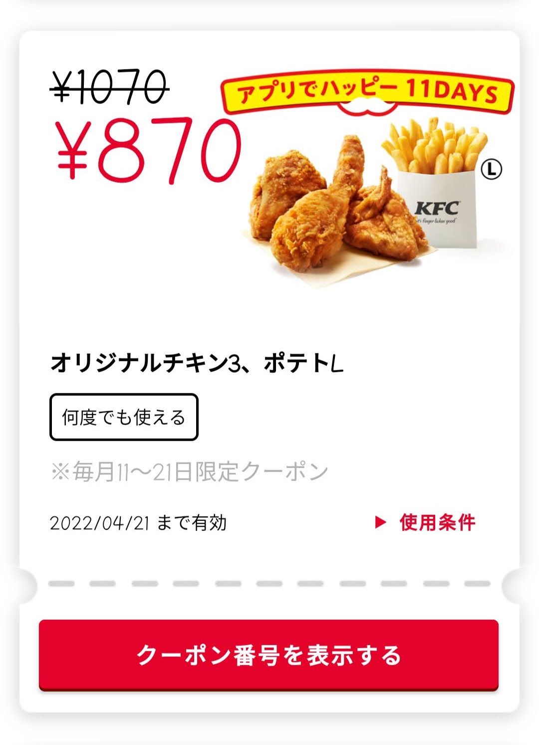Screenshot_2022-04-20-19-53-22-19_eae0836508eeeb31a436894bba3acf99 Published 2022年4月20日 at 1080 × 1493 in 【2024年2月最新】ケンタッキーの割引クーポン 広告 ← Previous Next →
