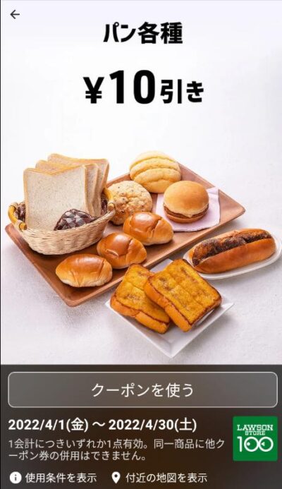 パン各種10円引き Published 2022年4月2日 at 400 × 693 in 【2024年2月最新】ローソンの割引クーポンまとめ情報 パン各種10円引き 広告 ← Previous Next →