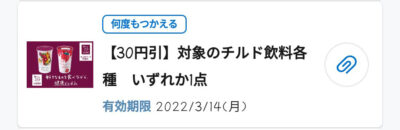 ローソン 対象のチルド飲料各種 いずれか一点 30円引き Published 2022年3月2日 at 400 × 130 in 【2024年2月最新】ローソンの割引クーポンまとめ情報 対象のチルド飲料各種 いずれか一点 30円引き 広告 ← Previous Next →