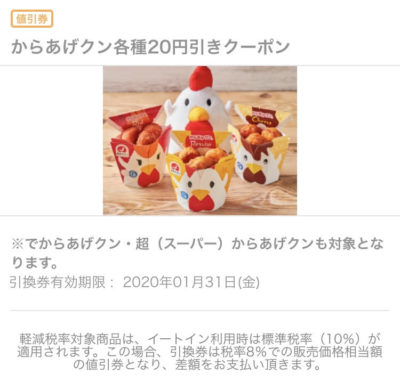 ローソンからあげクン各種20円引きクーポン Published 2020年1月2日 at 400 × 382 in 【2024年2月最新】ローソンの割引クーポンまとめ情報 からあげクン各種20円引き 広告 ← Previous Next →