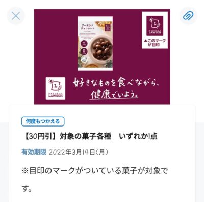 ローソン 対象の菓子各種30円引き Published 2022年3月2日 at 400 × 396 in 【2024年2月最新】ローソンの割引クーポンまとめ情報 ローソン 対象の菓子各種30円引き 広告 ← Previous Next →