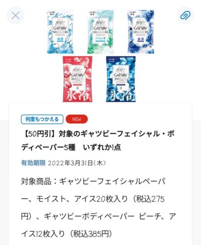 ローソン ギャッツビーフェイシャル・ボディーペーパー 50円引き Published 2022年3月2日 at 400 × 488 in 【2024年2月最新】ローソンの割引クーポンまとめ情報 ギャッツビーフェイシャル・ボディーペーパー 50円引き 広告 ← Previous Next →