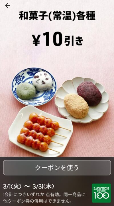 ローソンストア100 和菓子10円引き Published 2022年3月2日 at 400 × 720 in 【2024年2月最新】ローソンの割引クーポンまとめ情報 和菓子10円引き 広告 ← Previous Next →