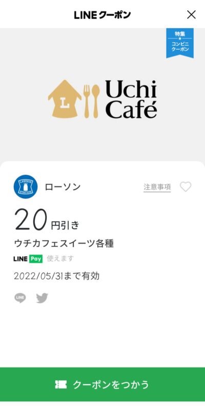 ウチカフェスイーツ各種20円引き Published 2022年4月2日 at 400 × 793 in 【2024年2月最新】ローソンの割引クーポンまとめ情報 ウチカフェスイーツ各種20円引き 広告 ← Previous Next →