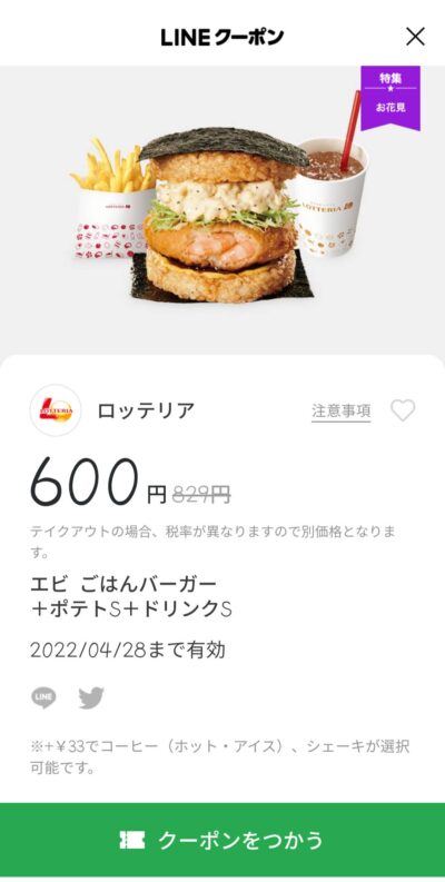 エビごはんバーガー∔ポテト、ドリンクS229円引き Published 2022年4月9日 at 400 × 793 in 【2024年2月最新】ロッテリアの割引クーポンまとめ情報! エビごはんバーガー∔ポテト、ドリンクS229円引き 広告 ← Previous Next →
