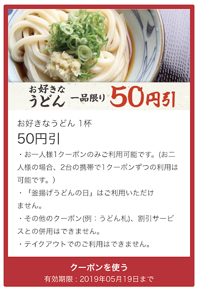 2019-04-19_032046 Published 2019年4月19日 at 411 × 593 in 【2024年2月最新】丸亀製麺の割引クーポンまとめ情報 広告 ← Previous Next →