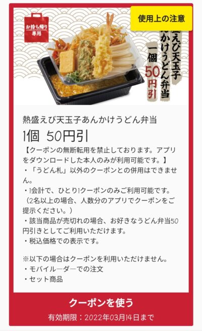 丸亀製麺熱盛えび玉子あんかけうどん弁当50円引き Published 2022年3月13日 at 400 × 656 in 【2024年2月最新】丸亀製麺の割引クーポンまとめ情報 盛えび玉子あんかけうどん弁当50円引き 広告 ← Previous Next →