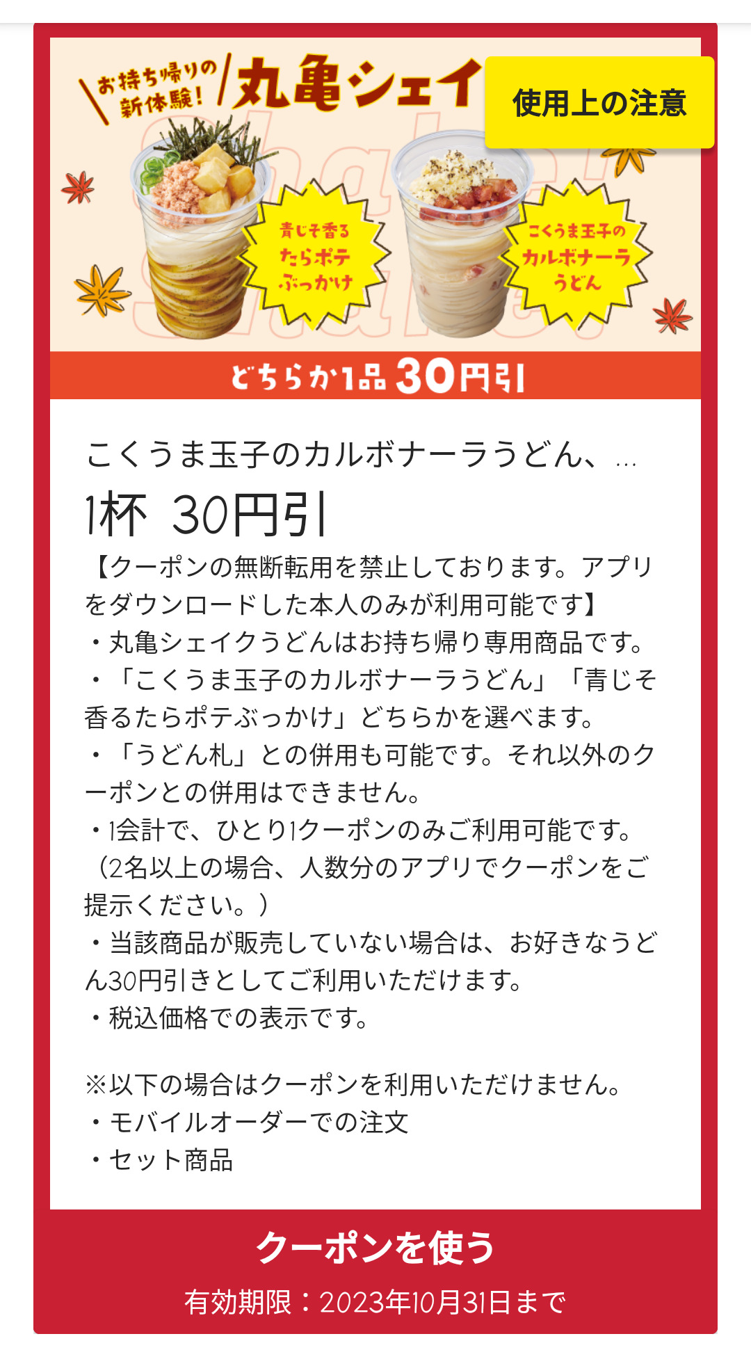 Screenshot_2023-10-20-19-01-09-82 Published 2023年10月20日 at 1080 × 1941 in 【2024年2月最新】丸亀製麺の割引クーポンまとめ情報 広告 ← Previous Next →