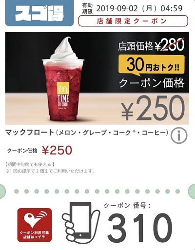 マックフロート30円引き Published 2019年8月20日 at 400 × 513 in 【2024年2月最新】マクドナルドの割引クーポンまとめ情報! マックフロート30円引き 広告 ← Previous Next →