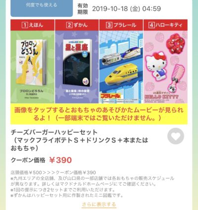 マクドナルドのチーズバーガーハッピーセットクーポン Published 2019年10月12日 at 400 × 425 in 【2024年2月最新】マクドナルドの割引クーポンまとめ情報! 広告 ← Previous Next →