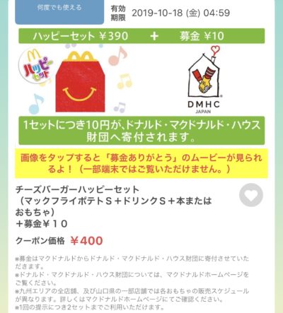 マクドナルドのチーズバーガーハッピーセットクーポン Published 2019年10月12日 at 400 × 443 in 【2024年2月最新】マクドナルドの割引クーポンまとめ情報! 広告 ← Previous Next →