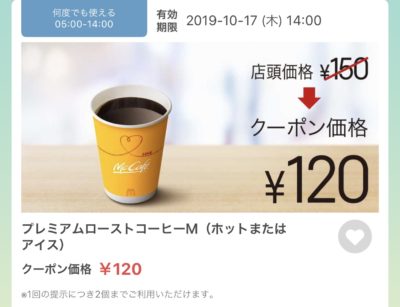 マクドナルドのプレミアムローストコーヒー30円引きクーポン Published 2019年10月15日 at 400 × 307 in 【2024年2月最新】マクドナルドの割引クーポンまとめ情報! 広告 ← Previous Next →