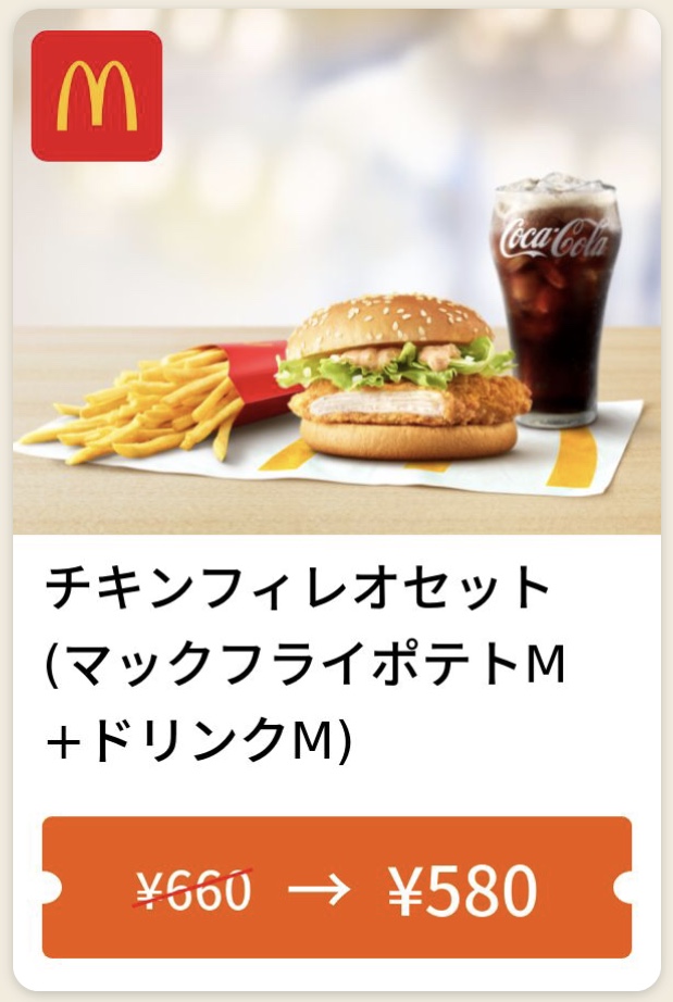 マクドナルドのチキンフィレオセット80円引きクーポン Published 2019年10月17日 at 619 × 922 in 【2024年2月最新】マクドナルドの割引クーポンまとめ情報! チキンフィレオセット80円引き 広告 ← Previous Next →