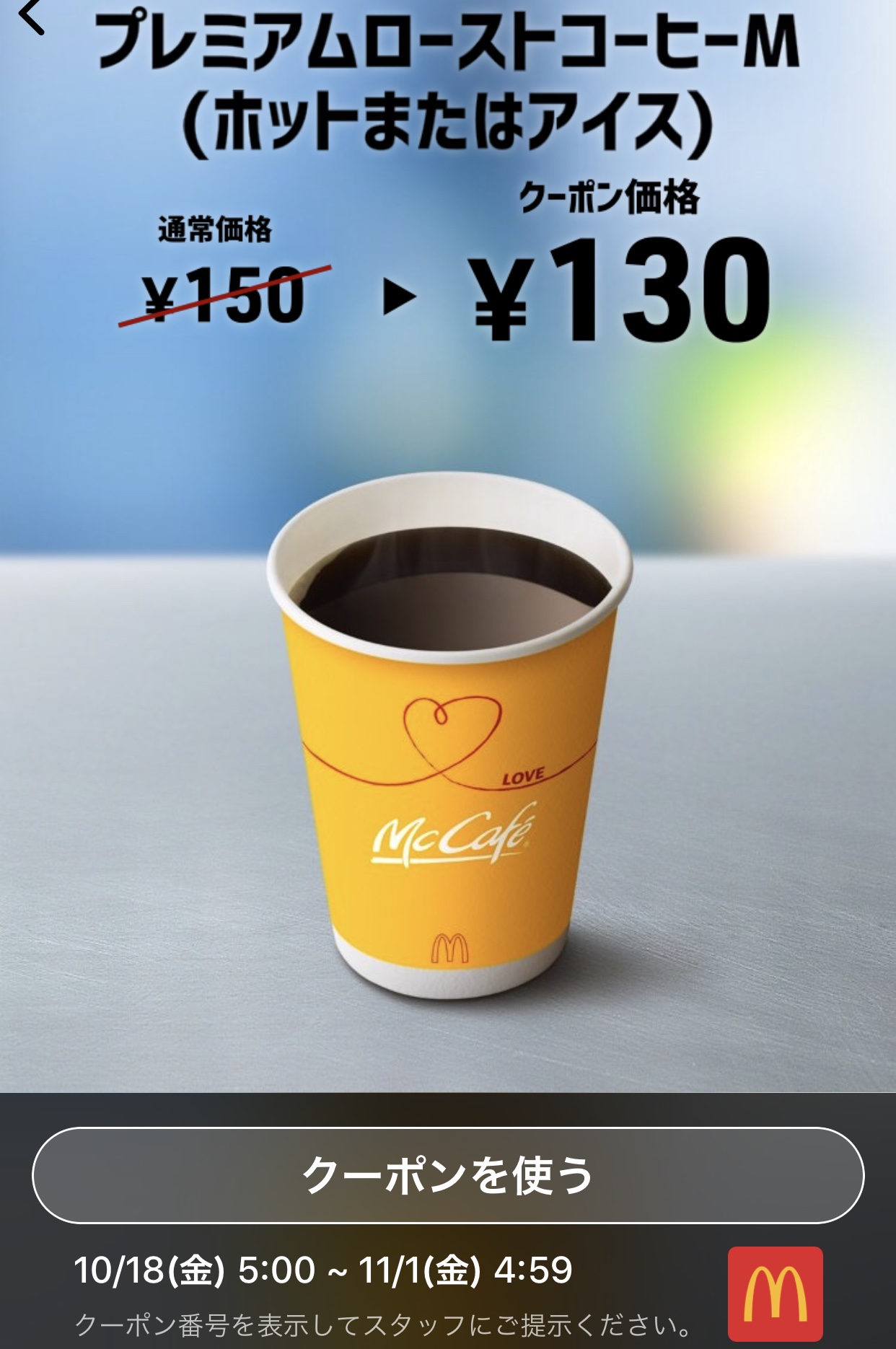 マクドナルドのプレミアムローストコーヒーM20円引きクーポン Published 2019年10月19日 at 1242 × 1870 in 【2024年2月最新】マクドナルドの割引クーポンまとめ情報! 広告 ← Previous Next →
