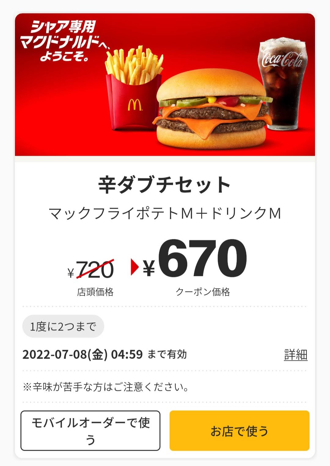 Screenshot_2022-07-05-19-42-42-09_b27526695fa1a8ae347692059296223d Published 2022年7月5日 at 1080 × 1523 in 【2024年2月最新】マクドナルドの割引クーポンまとめ情報! 広告 ← Previous Next →
