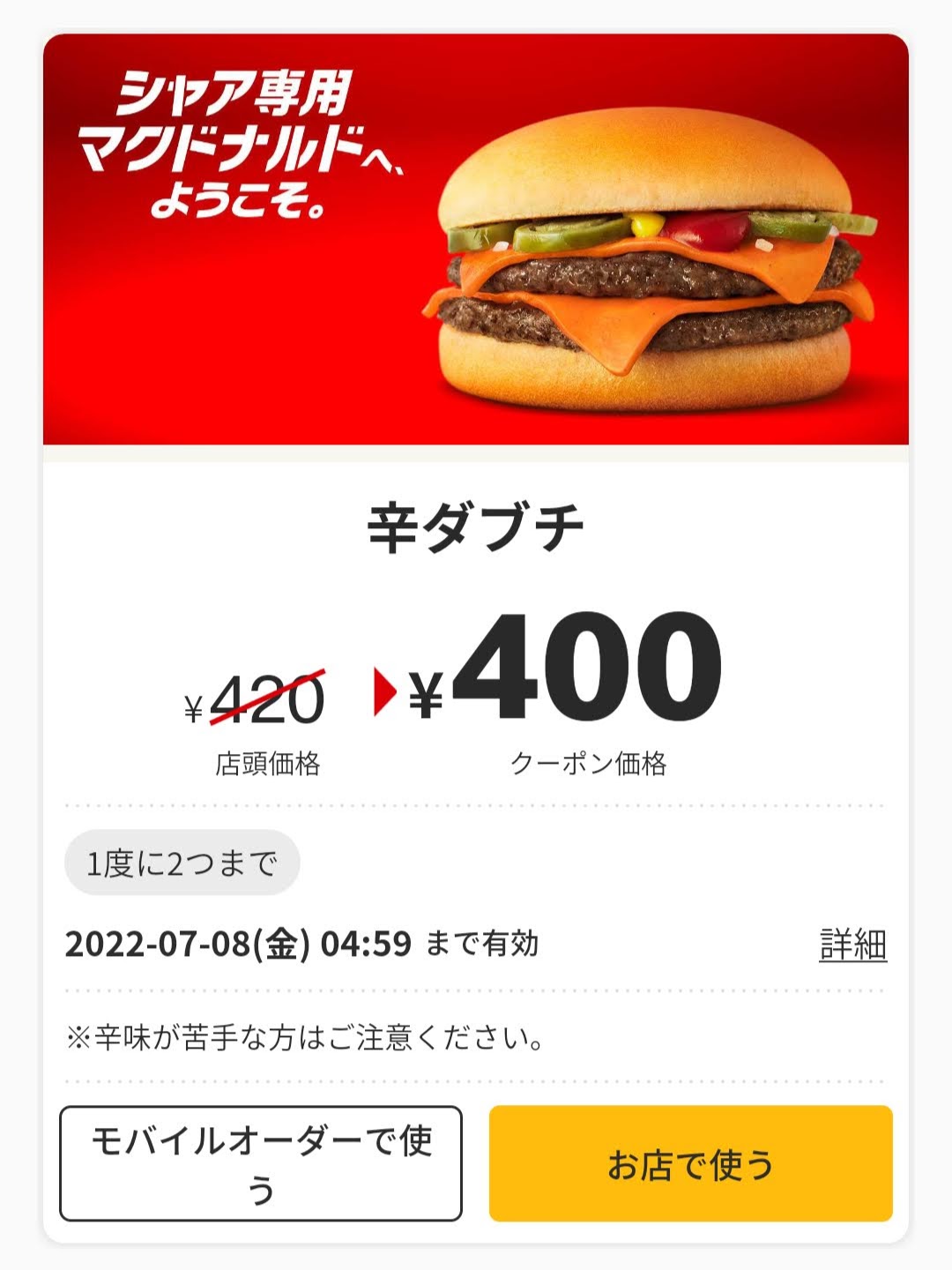 Screenshot_2022-07-05-19-42-54-77_b27526695fa1a8ae347692059296223d Published 2022年7月5日 at 1080 × 1440 in 【2024年2月最新】マクドナルドの割引クーポンまとめ情報! 広告 ← Previous Next →