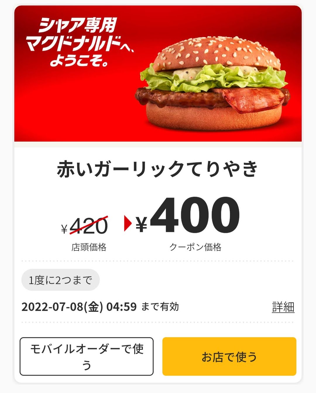 Screenshot_2022-07-05-19-42-57-14_b27526695fa1a8ae347692059296223d Published 2022年7月5日 at 1080 × 1346 in 【2024年2月最新】マクドナルドの割引クーポンまとめ情報! 広告 ← Previous Next →