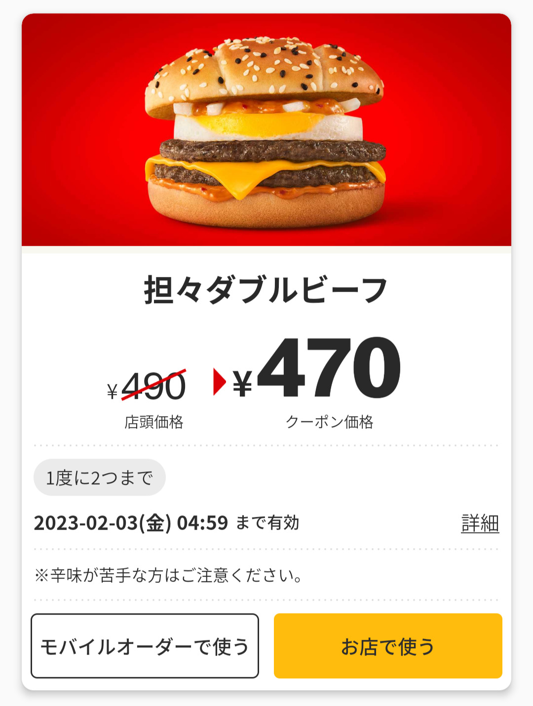 Screenshot_2023-02-01-19-46-33-59_b27526695fa1a8ae347692059296223d Published 2023年2月1日 at 1080 × 1430 in 【2024年2月最新】マクドナルドの割引クーポンまとめ情報! 広告 ← Previous Next →