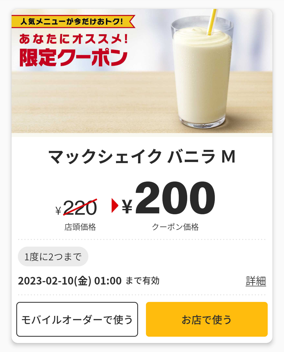 Screenshot_2023-02-05-16-18-42-63_b27526695fa1a8ae347692059296223d Published 2023年2月5日 at 1080 × 1336 in 【2024年2月最新】マクドナルドの割引クーポンまとめ情報! 広告 ← Previous Next →