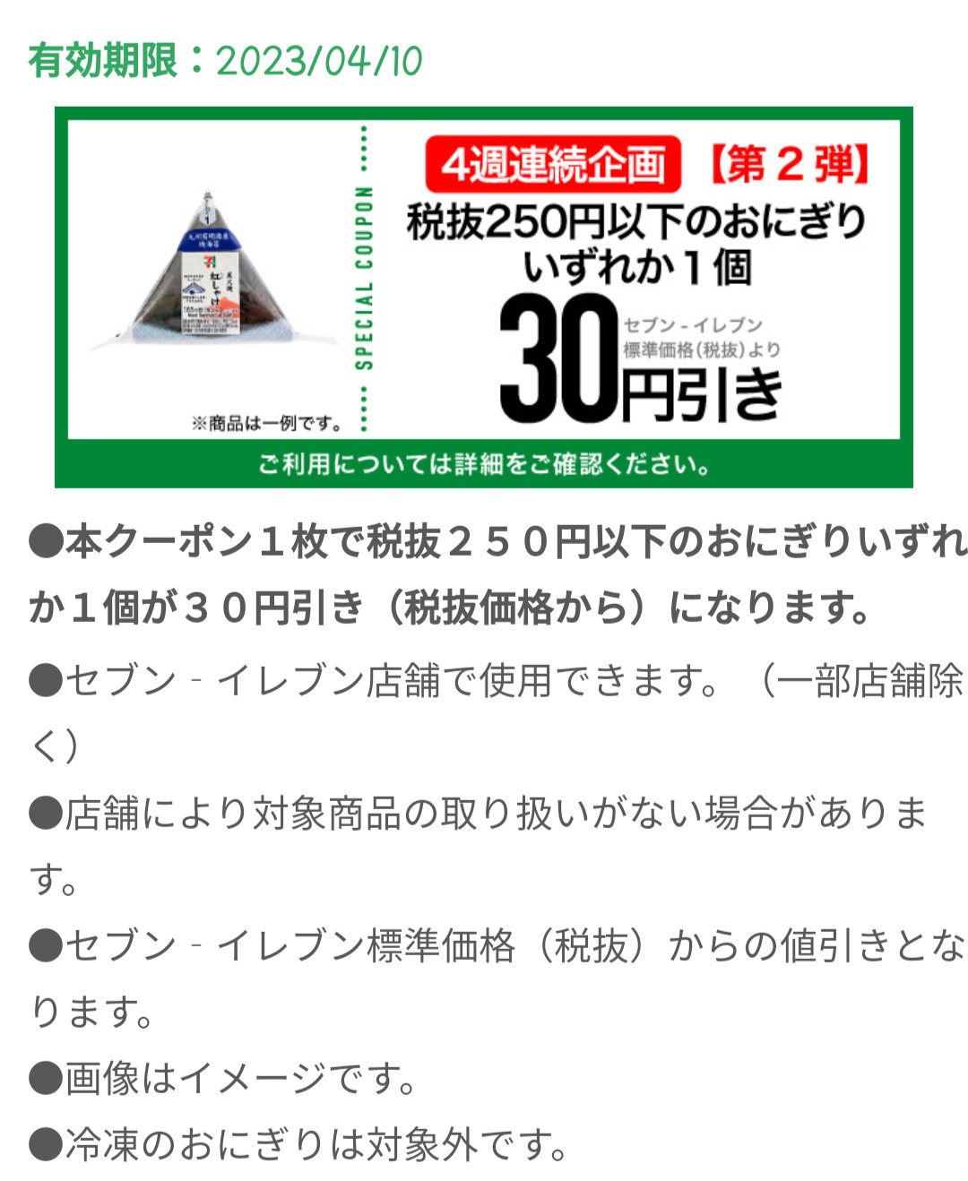 Screenshot_2023-04-04-18-27-12-84_a66531e6acbcb6cca4b6570d73edbabe Published 2023年4月4日 at 1080 × 1318 in 【2024年2月最新】セブンイレブンの割引クーポンまとめ情報 広告 ← Previous Next →