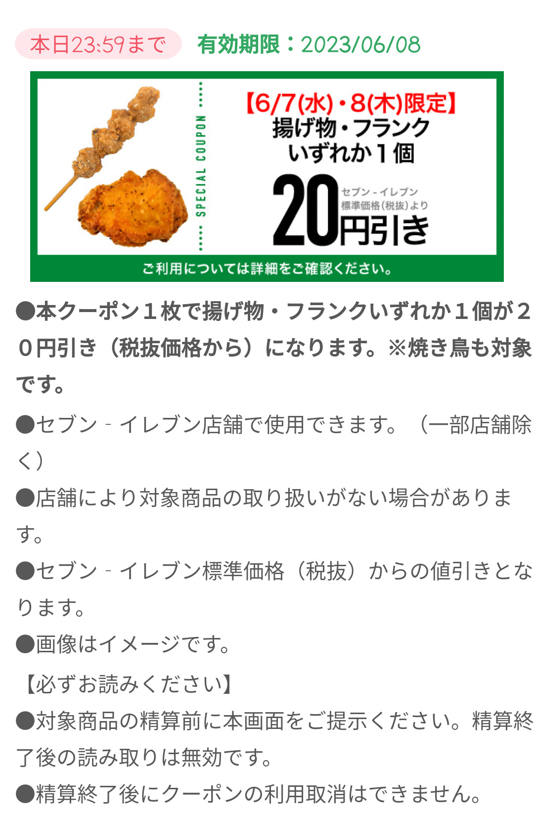 Screenshot_2023-06-08-15-27-11-93_a66531e6acbcb6cca4b6570d73edbabe Published 2023年6月8日 at 1080 × 1650 in 【2024年2月最新】セブンイレブンの割引クーポンまとめ情報 広告 ← Previous Next →