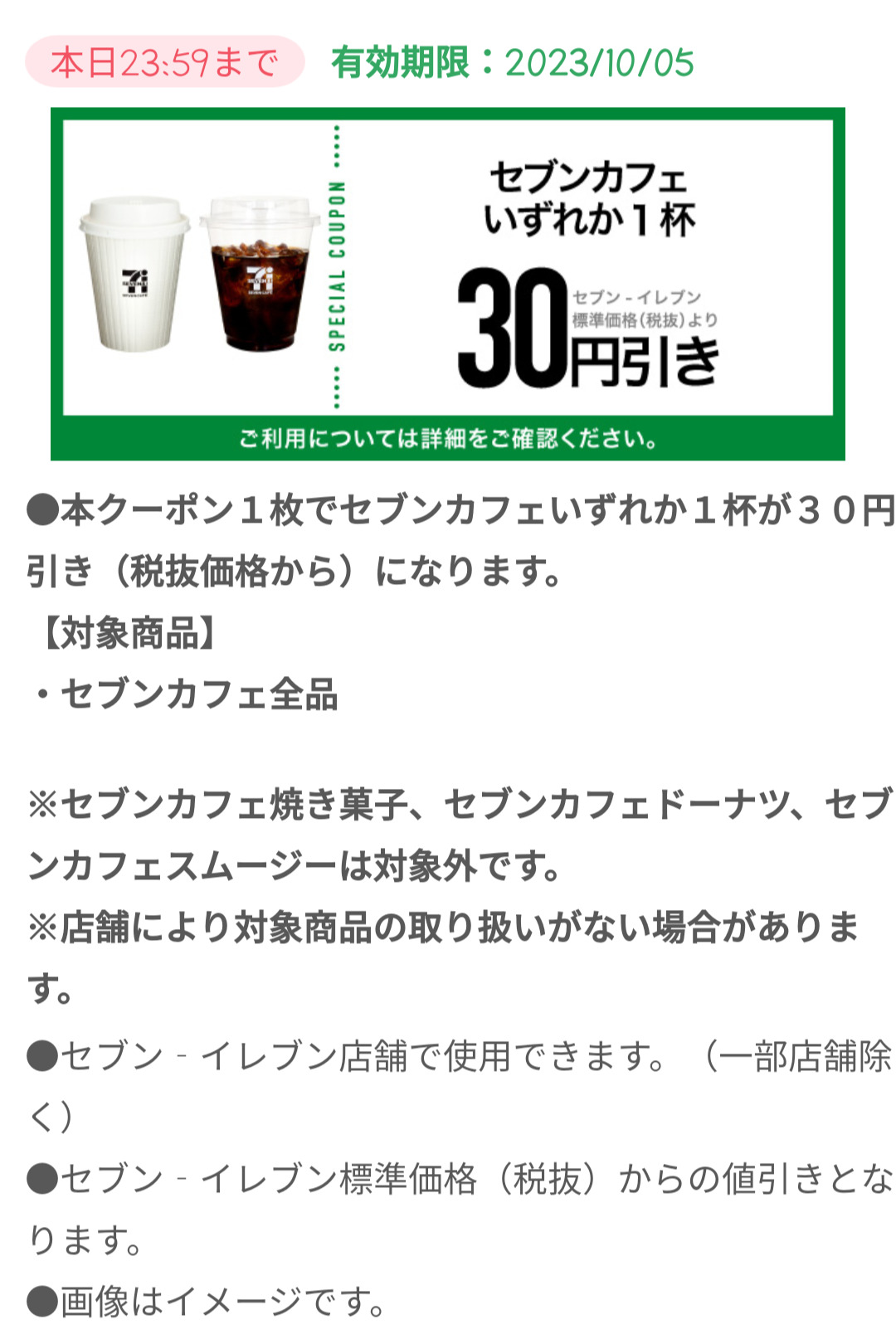 Screenshot_2023-10-05-19-26-16-46_a66531e6acbcb6cca4b6570d73edbabe Published 2023年10月5日 at 1080 × 1614 in 【2024年2月最新】セブンイレブンの割引クーポンまとめ情報 広告 ← Previous Next →