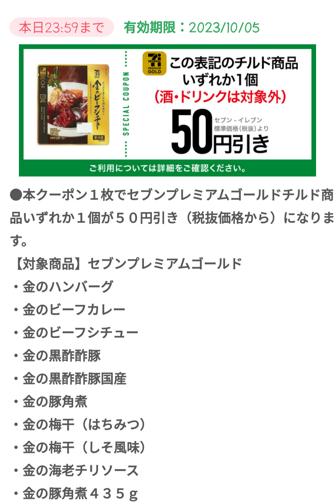Screenshot_2023-10-05-19-26-21-91_a66531e6acbcb6cca4b6570d73edbabe Published 2023年10月5日 at 1080 × 1624 in 【2024年2月最新】セブンイレブンの割引クーポンまとめ情報 広告 ← Previous Next →