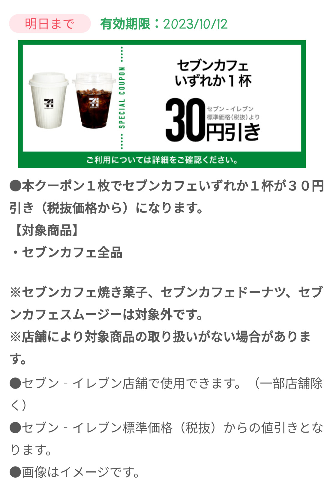 Screenshot_2023-10-11-19-41-54-99_a66531e6acbcb6cca4b6570d73edbabe Published 2023年10月11日 at 1080 × 1613 in 【2024年2月最新】セブンイレブンの割引クーポンまとめ情報 広告 ← Previous Next →