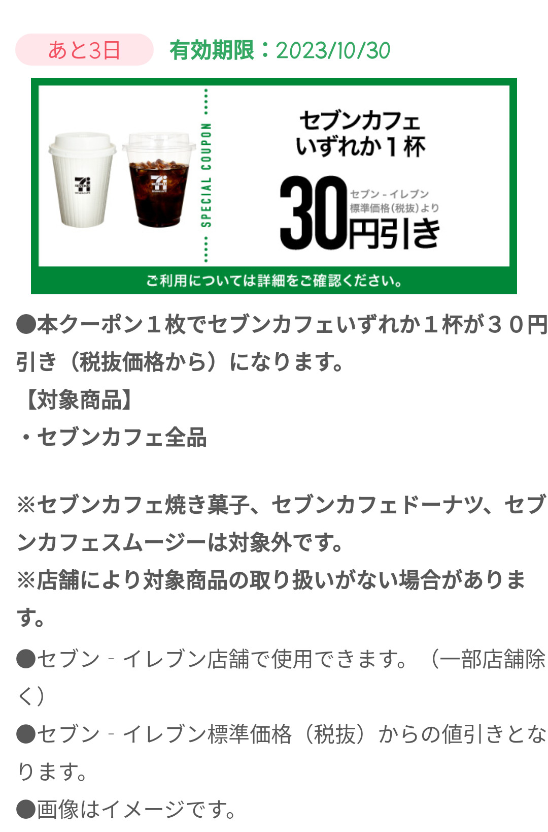 Screenshot_2023-10-28-19-18-19-46_a66531e6acbcb6cca4b6570d73edbabe Published 2023年10月28日 at 1080 × 1637 in 【2024年2月最新】セブンイレブンの割引クーポンまとめ情報 広告 ← Previous Next →