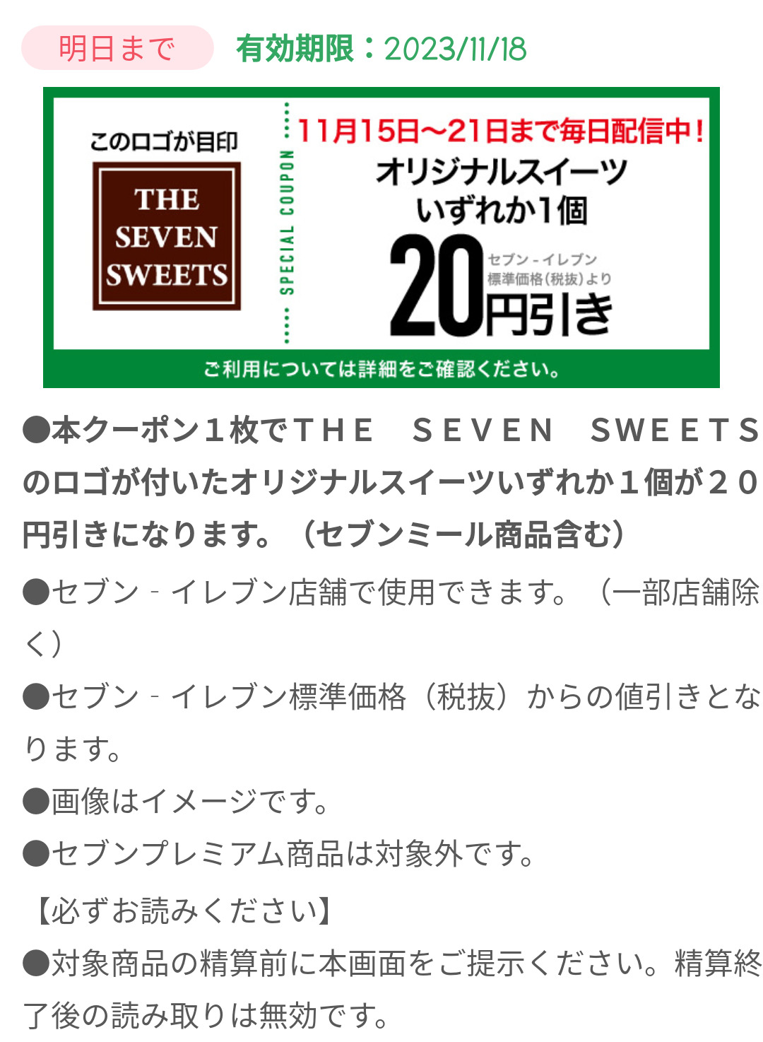 Screenshot_2023-11-17-19-54-13-60_a66531e6acbcb6cca4b6570d73edbabe Published 2023年11月18日 at 1080 × 1474 in 【2024年2月最新】セブンイレブンの割引クーポンまとめ情報 広告 ← Previous Next →
