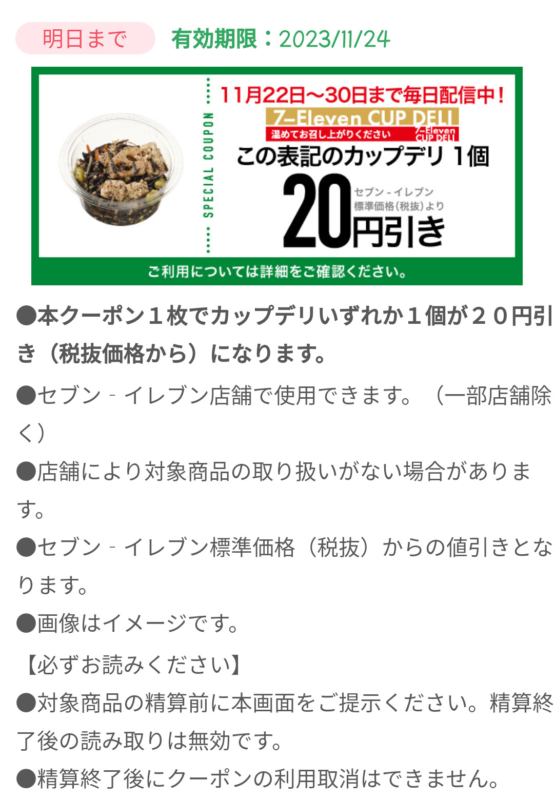 Screenshot_2023-11-23-14-36-18-73_a66531e6acbcb6cca4b6570d73edbabe Published 2023年11月23日 at 1080 × 1555 in 【2024年2月最新】セブンイレブンの割引クーポンまとめ情報 広告 ← Previous Next →