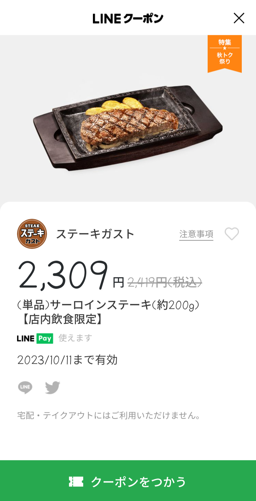 Screenshot_2023-10-03-17-36-23-11 Published 2023年10月3日 at 1080 × 2107 in 【2024年2月最新】ステーキガストの割引クーポンまとめ情報 広告 ← Previous Next →