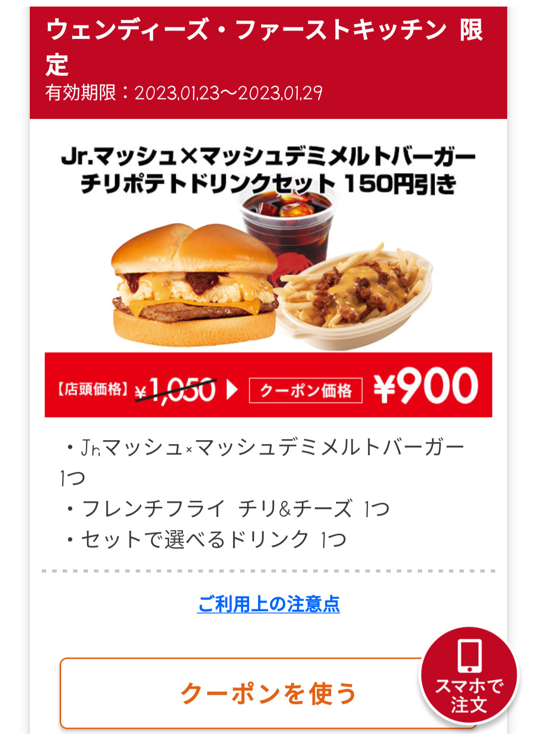 Screenshot_2023-01-26-15-27-58-08_4f596d53fa4b0012360217ddb2679274 Published 2023年1月26日 at 1080 × 1476 in 【2024年2月最新】ウェンディーズの割引クーポンまとめ情報 広告 ← Previous Next →