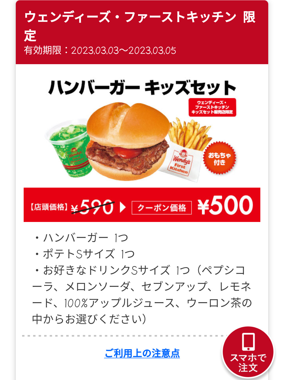 Screenshot_2023-03-04-17-48-03-73_4f596d53fa4b0012360217ddb2679274 Published 2023年3月4日 at 1080 × 1445 in 【2024年2月最新】ウェンディーズの割引クーポンまとめ情報 広告 ← Previous Next →
