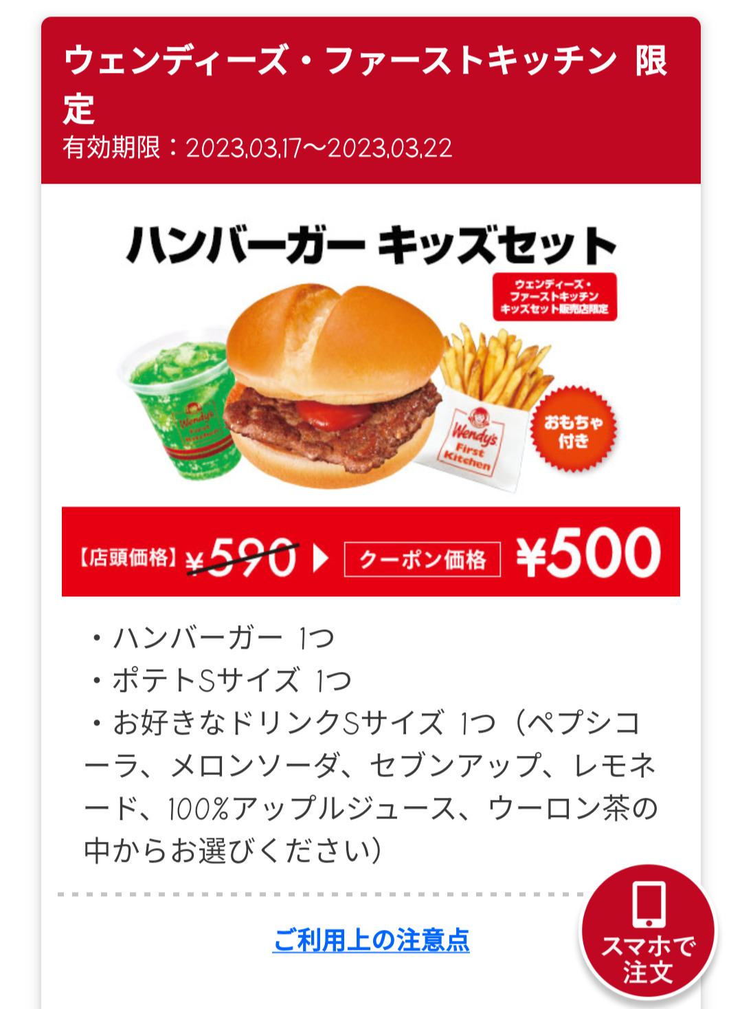 Screenshot_2023-03-18-17-43-21-86_4f596d53fa4b0012360217ddb2679274 Published 2023年3月18日 at 1080 × 1467 in 【2024年2月最新】ウェンディーズの割引クーポンまとめ情報 広告 ← Previous Next →