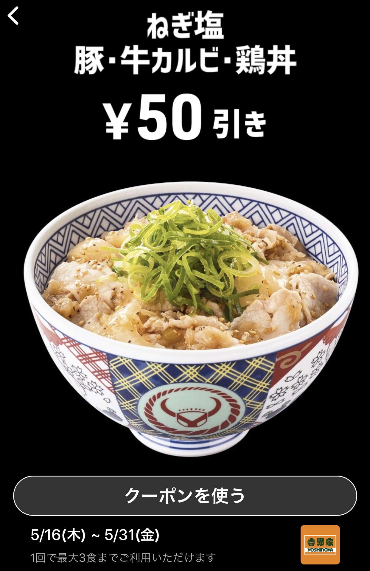 ネギ塩丼50円引き
