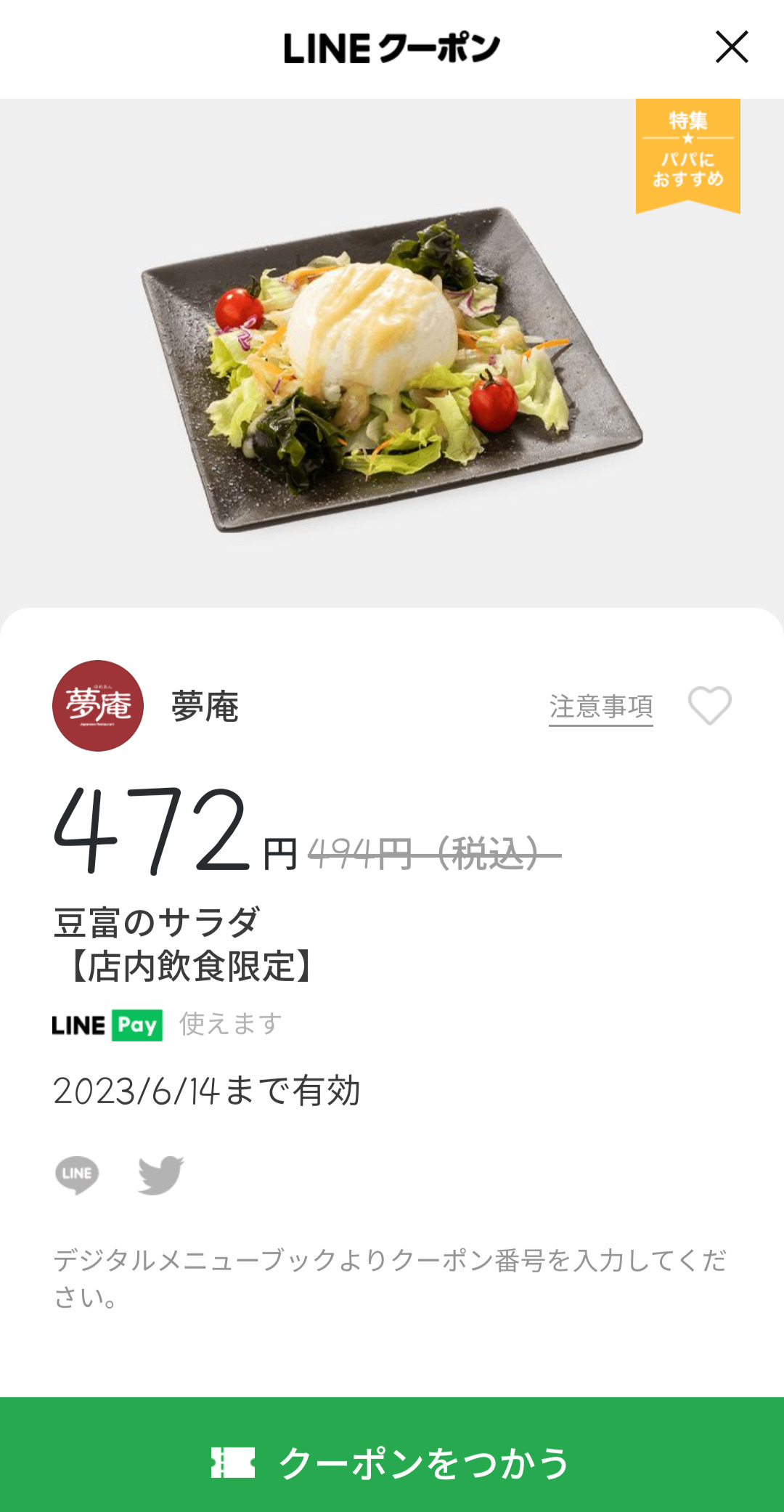 Screenshot_2023-06-08-17-49-14-30 Published 2023年6月8日 at 1080 × 2082 in 【2024年2月最新】夢庵の割引クーポンまとめ情報 広告 ← Previous Next →